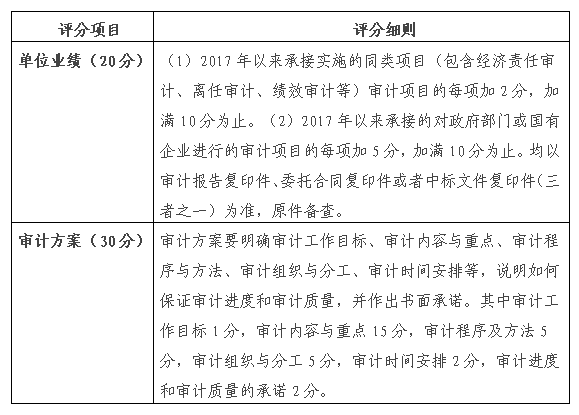 6.开展审计工作的方案(密封),方案内容必须包含愿意参与审计内容的意向、收取的费用、开展的完成时间等。