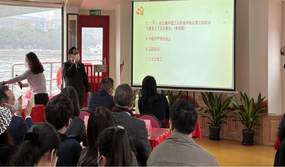 冬日的珠江,凉风习习,清波荡漾。2023年1月9日下午15:30,在一派旖旎风光中,广州市海珠区产业园区联盟“追忆红色足迹,弘扬红船精神”党建活动在“广州红”主题游船举行。TIT创意园、创投小镇、工美港、海珠高新技术创业服务中心、O2PARK创客公园、海珠创意产业园、广一电商园、琶洲科技园、海珠同创汇、燕岗1号创意园、岭南V谷橡胶创意园、启胜会展产业园、乐天智谷和华新创新岛14个产业园区近70名党员同志参加活动。