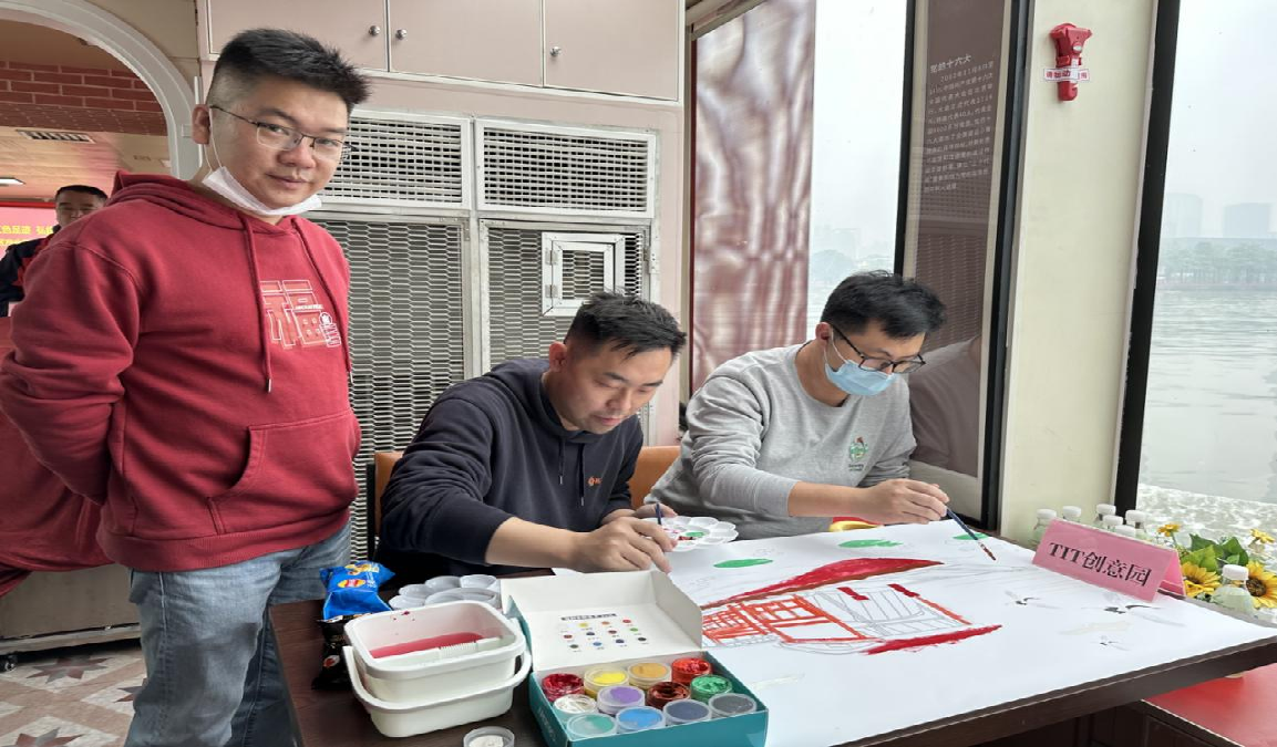 最有意义的当属绘红船学精神环节。此环节由每个产业园区推荐1-2名党员代表参加手绘红船活动,大家可以用水彩颜料在红船线稿上进行创意填色。在亲手绘制红船的过程中,用心回顾、感受这段艰难而又光荣的历史,体会红船精神。绘画结束,嘉宾在展示红船画作的时候,分享自己绘画的体会:“我这个画作上特意画多了一个爱心,因为我爱我们的园区,也爱我们的祖国!”,还有作者在画作上写“不忘初心、牢记使命”,表示:作为一名中国共产党员,我很自豪、骄傲。我会在自己的工作岗位上发挥一名共产党员的本色,牢记初心,不忘使命。